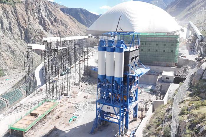 旭龙高线混凝土生产系统首座拌和楼主体完工 |