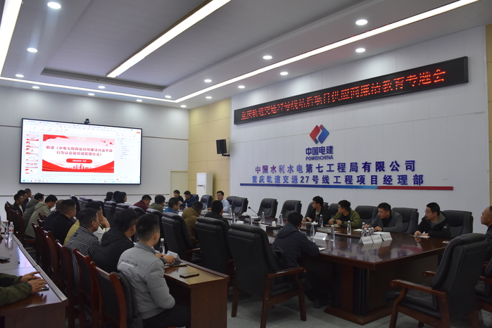 本网重庆消息(李圆裕 报道)11月27日,水电七局重庆轨道交通27号线站后项目组织召开供应商廉洁教育专题会。