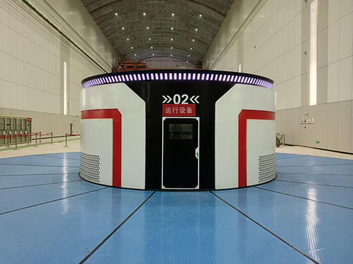 本网果洛消息(陈志维 报道)5月30日,从安装分局获悉,黄河流域海拔最高的水电工程青海玛尔挡水电站首次落地应用大型水电机组压水调相技术,标志我国在水电领域大容量机组调相运行取得新突破。 压水调相改造主要是在原有机组上新增一套中压气系统、控制保护系统、供电系统、冷却水系统。压水调相技术其原理是关闭活动导叶,向转轮室内通入压缩空气,强制压低尾水管水位,使转轮在空气中旋转,机组由发电工况转为调相工况运行。枯水期,机组可以随时按系统要求进入调相运行,可有效提升跨区输电能力和支撑新能源消纳。汛水期,机组则以正常发电和参与防洪度汛为主,降低耗水率,大幅提升电站调节能力和经济效益。 玛尔挡水电站2号机组压水调相改造完成后,稳定运行时长可达24小时,调相能力国内最强,各项技术指标均达国际领先。机组运行状态平稳,各项指标均优于设计值。 该项技术应用后,可充分发挥黄河流域水电机组调节作用,有效提升近区电压支撑水平和新能源消纳能力30万千瓦,每年可减少电量损失约7000万千瓦时,具有显著的经济与环保效益,对增强系统灵活性,保障电网安全稳定运行,提升特高压青豫直流送电能力具有重要意义。(责任编辑 黄琪) 玛尔挡水电站2号机组 |