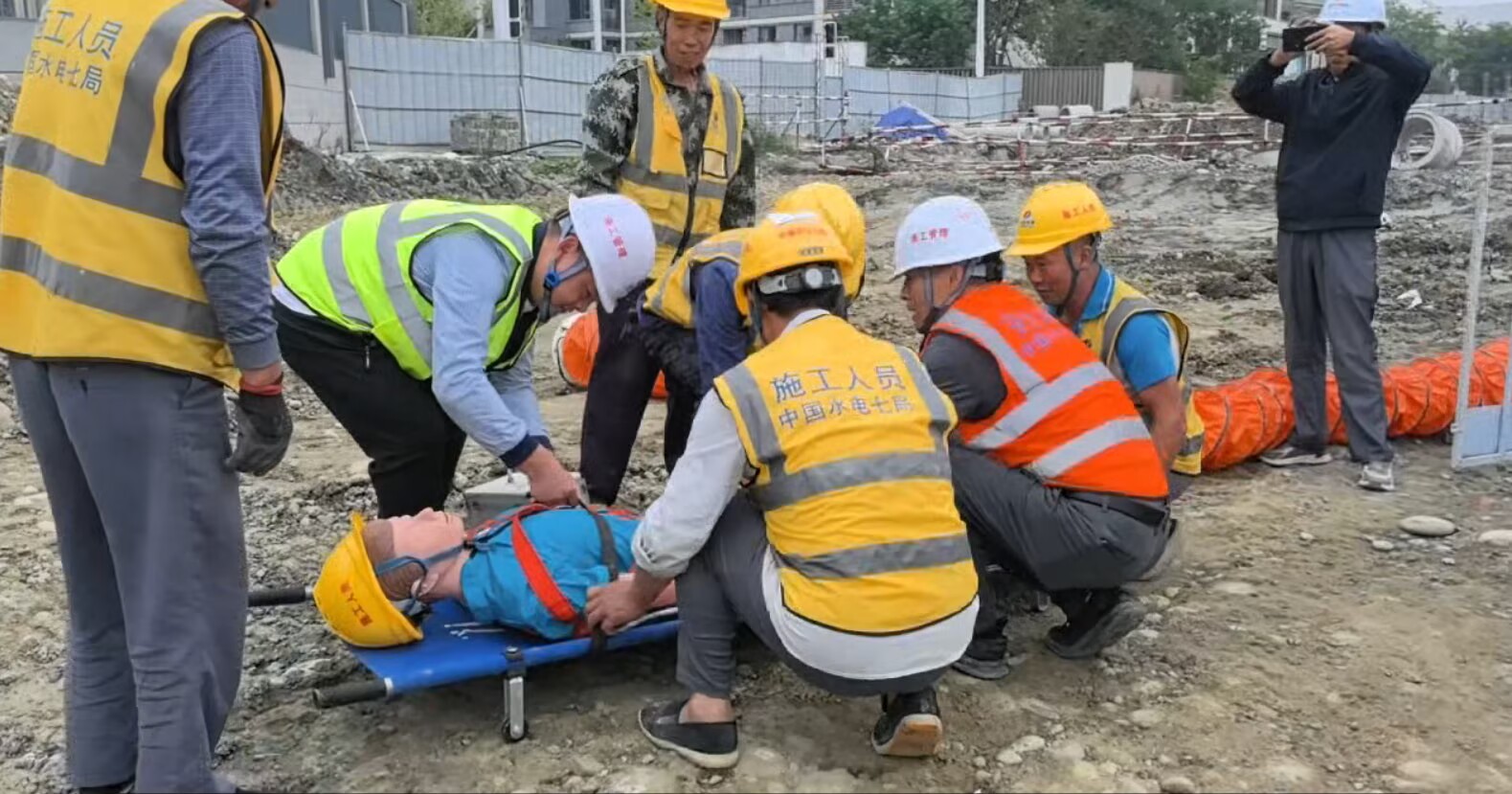 本网成都消息(简丹 报道)10月16日,水电七局回龙大道新建工程项目部组织开展有限空间作业应急演练。 演练在8号污水井施工现场进行,模拟污水井内因通风不畅导致作业人员缺氧窒息并受伤的突发情况。险情发生后,现场立即启动应急预案,各应急小组迅速响应、密切配合:井内作业人员有序撤离,通讯联络组第一时间传达指令,安全警戒组迅速封锁现场,医疗救护组及时实施伤员救治,抢险救援组同步排查并控制险情。整个演练过程指令清晰、行动有序、处置高效,圆满完成各项预定任务。 此次实战演练有效检验项目应急预案科学性与可操作性,增强各部门之间协同配合与应急处置能力,为项目后续安全生产提供有力保障。(责任编辑 曾润琪)