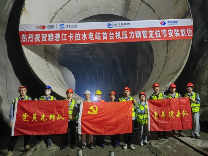 雅砻江卡拉水电站首台机压力钢管定位节安装就位 |